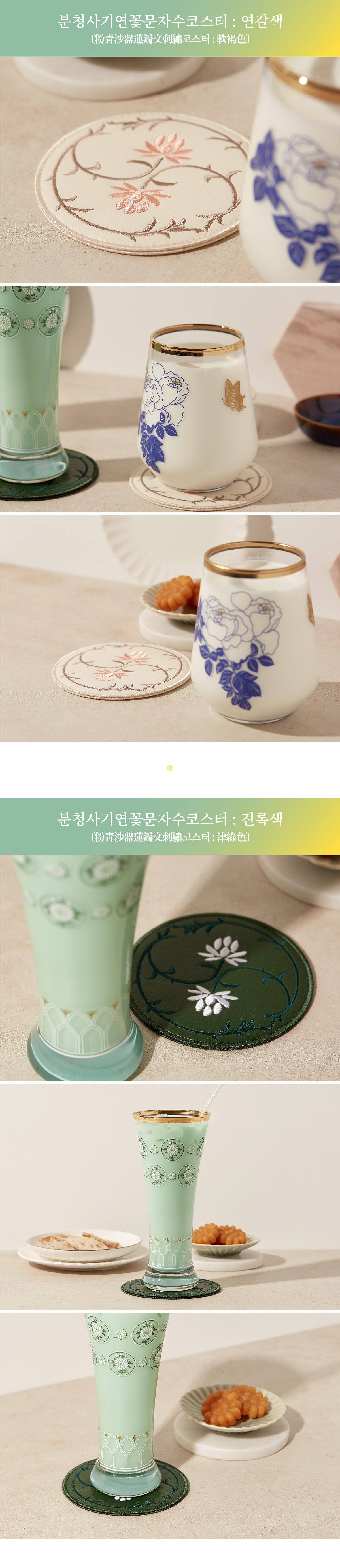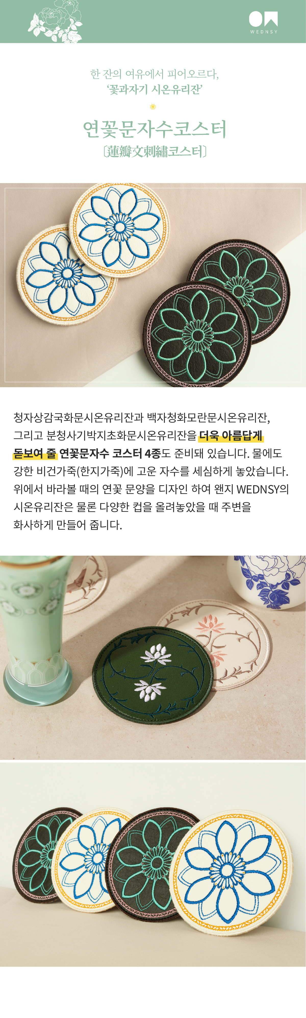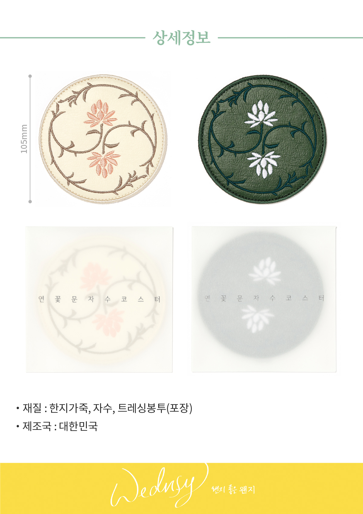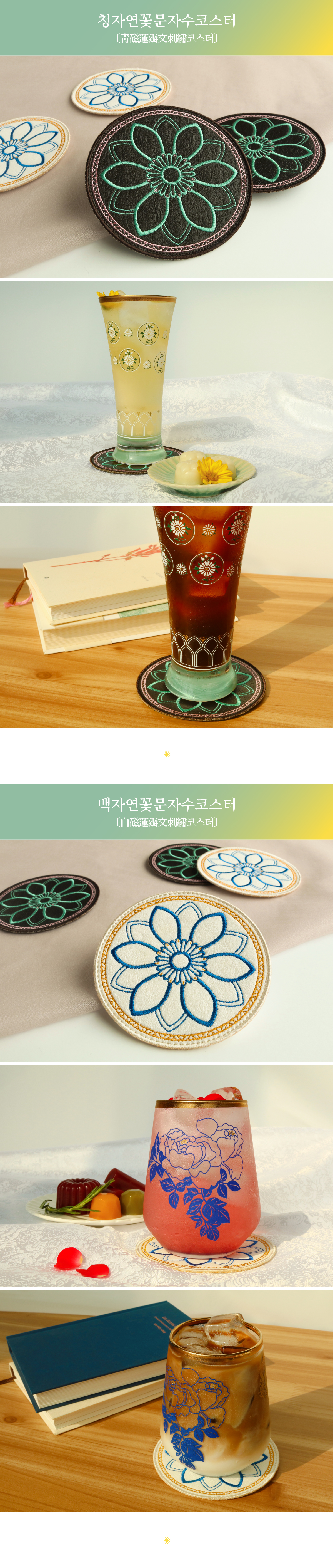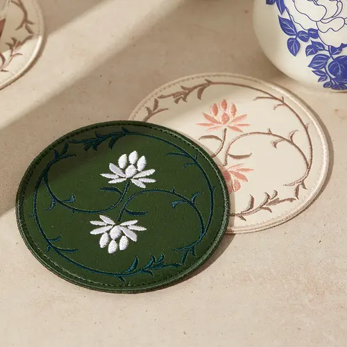 한지가죽에 자수로 새긴 어여쁜 연꽃문의 컵받침