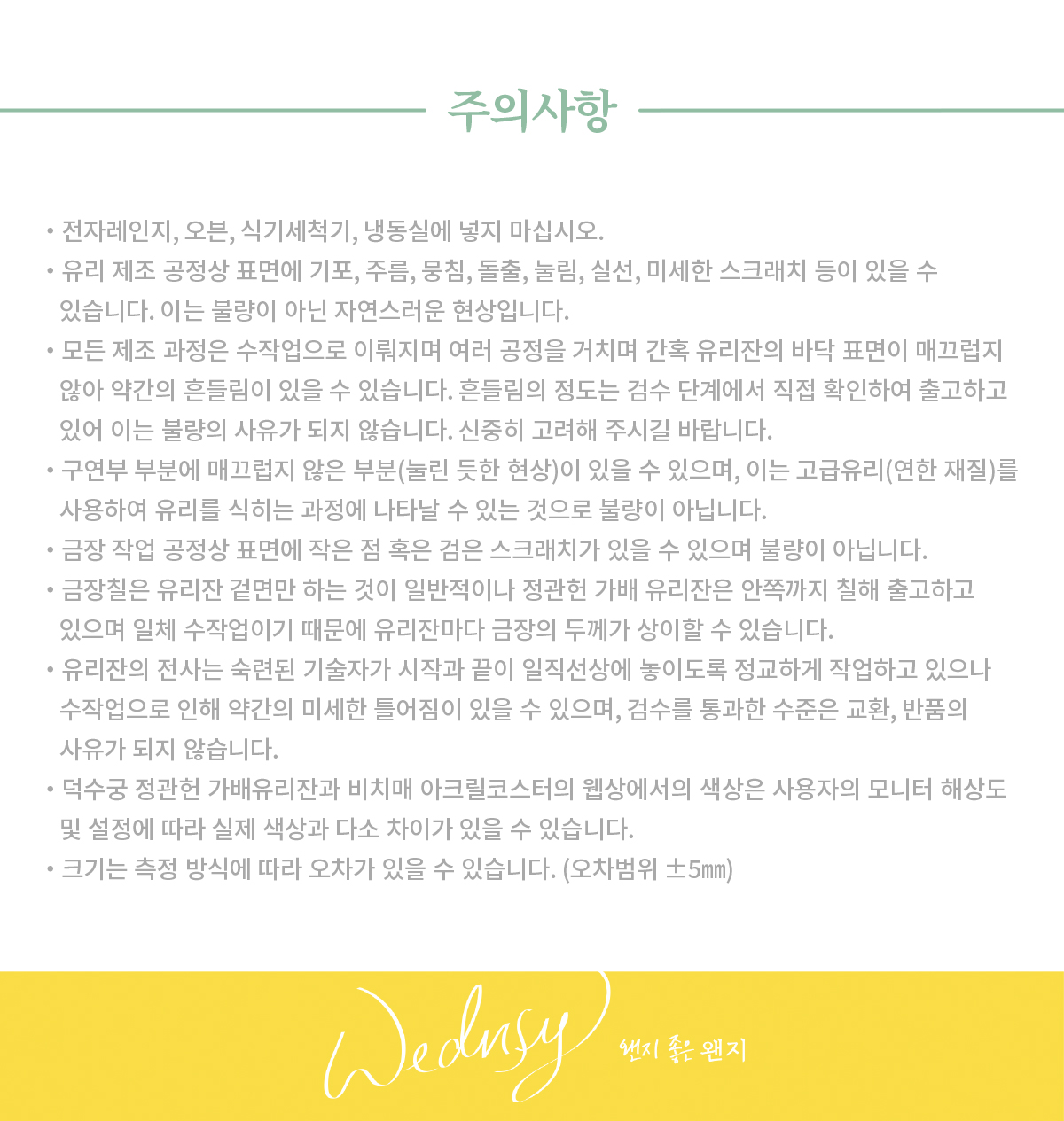 - 주의 사항에 기록되어 있는 사항의 경우