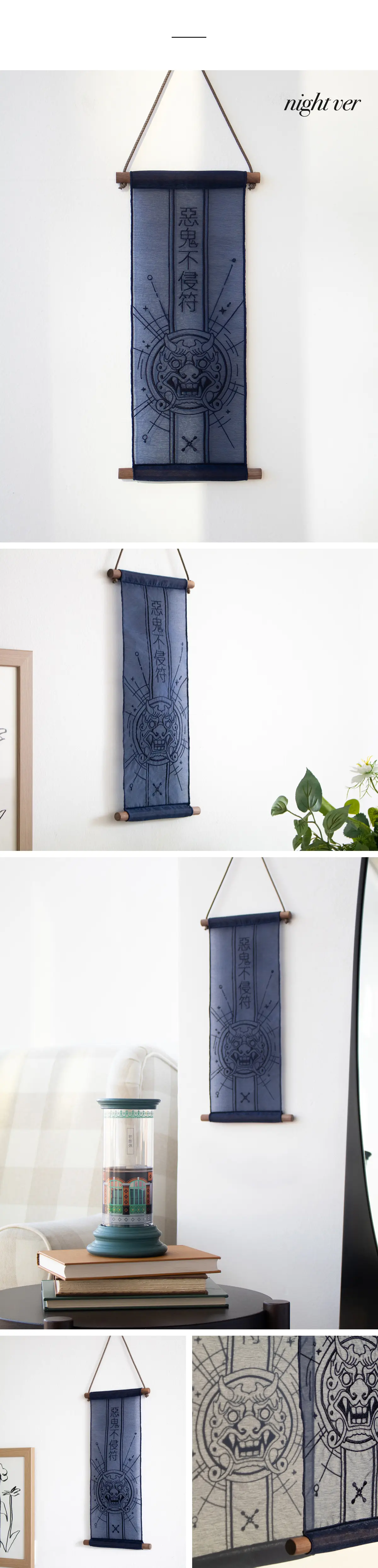 노방 가로 15 × 세로 44cm(끈, 목봉 제외) | 목봉 길이 19cm, 지름 15⌀(상단), 20⌀(하단) | 끈 60cm 제공