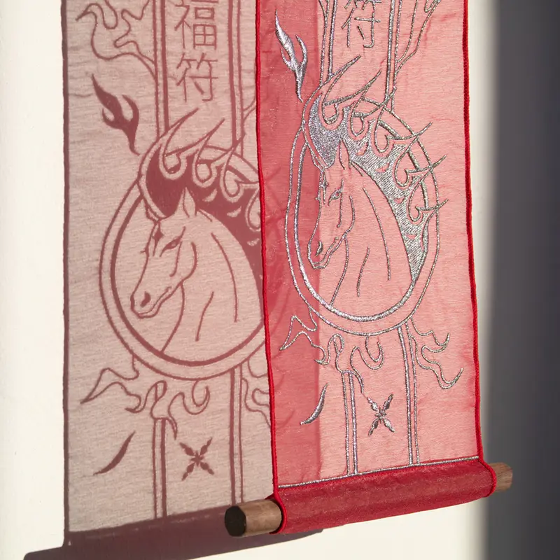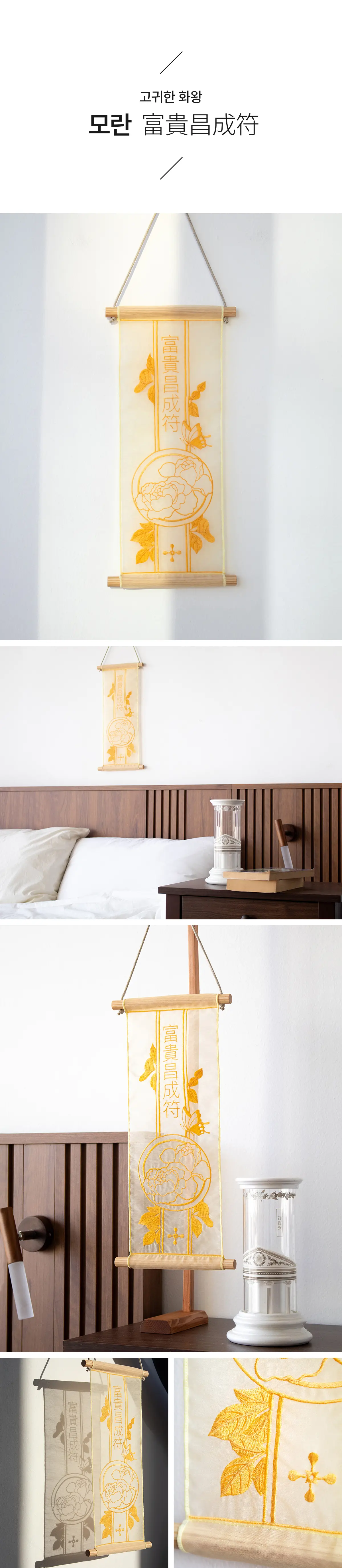 빛을 머금은 노방 위 섬세한 자수 공간을 채우는 상서로운 기운